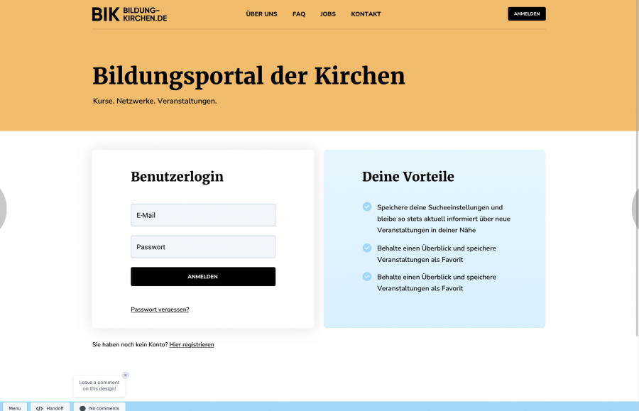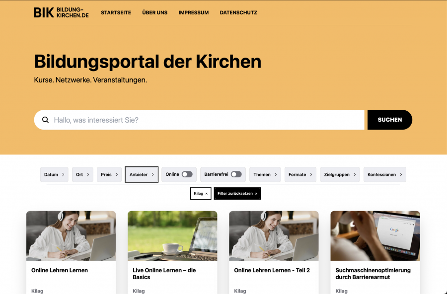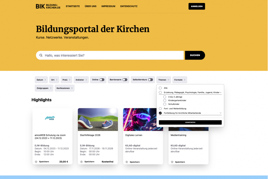 Hier der Link zur Anmeldung als neuer Veranstalter am neuen Bildungsportal der Kirchen:
